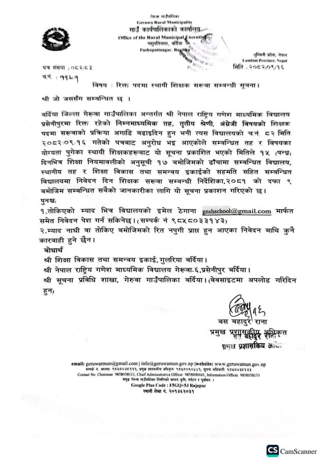 रिक्त पदमा स्थायी शिक्षक सरूवा सम्बन्धि सूचना