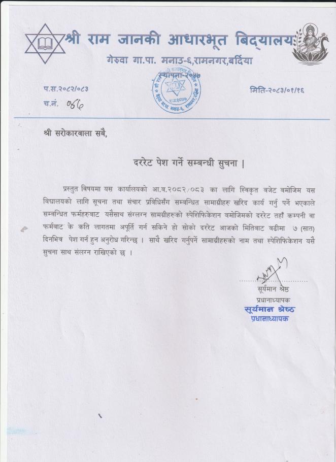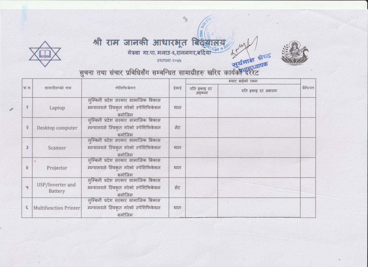 सूचना तथा संचार प्रविधिसँग सम्बन्धित सामाग्रीहरुको दररेट पेश गर्ने सम्बन्धी सूचना