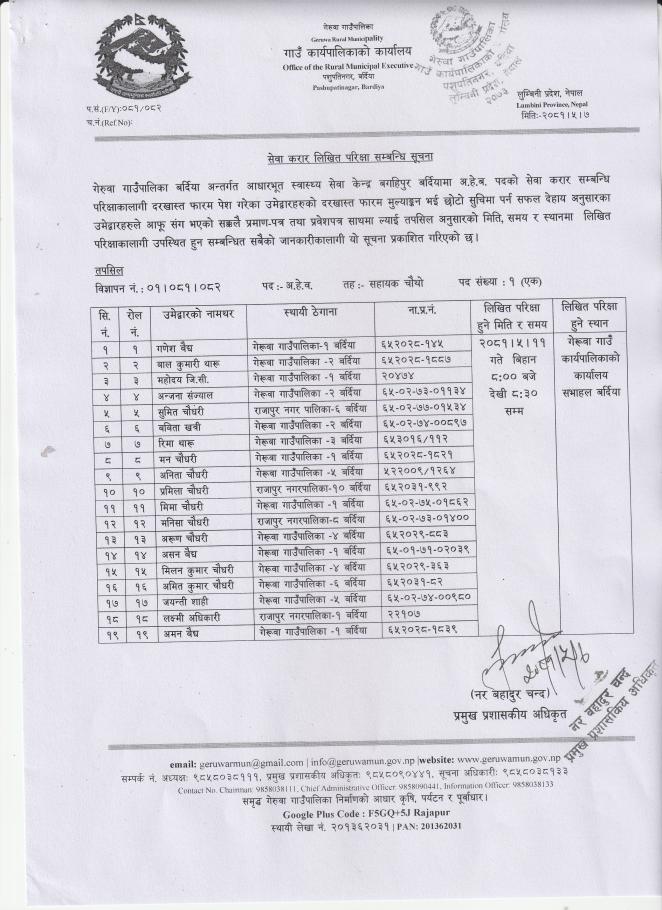 अ.हे.व. पदको सेवा करारको लिखित परिक्षा सम्बन्धि सूचना
