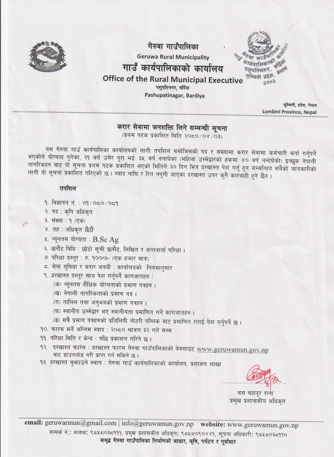 करार सेवामा जनशक्ती लिने सम्बन्धी सूचना