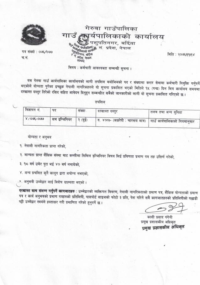 कर्मचारी आवश्यकता सम्बन्धी सूचना ।।।