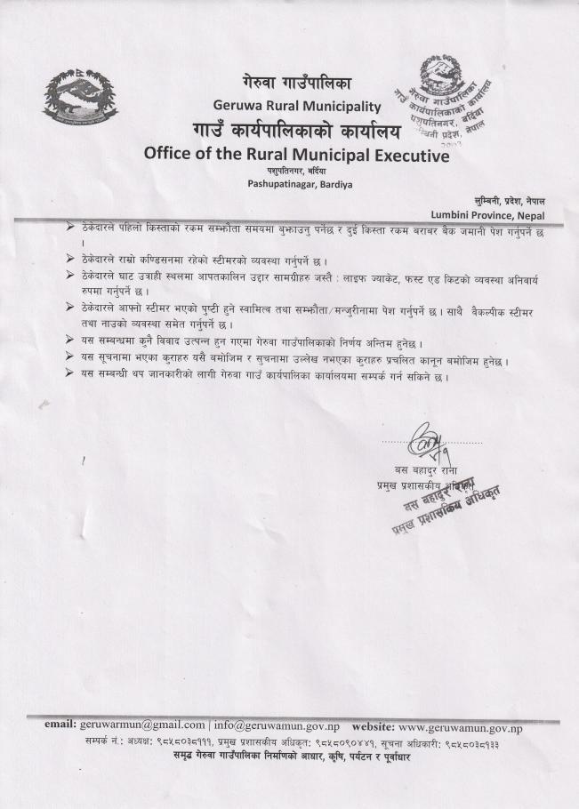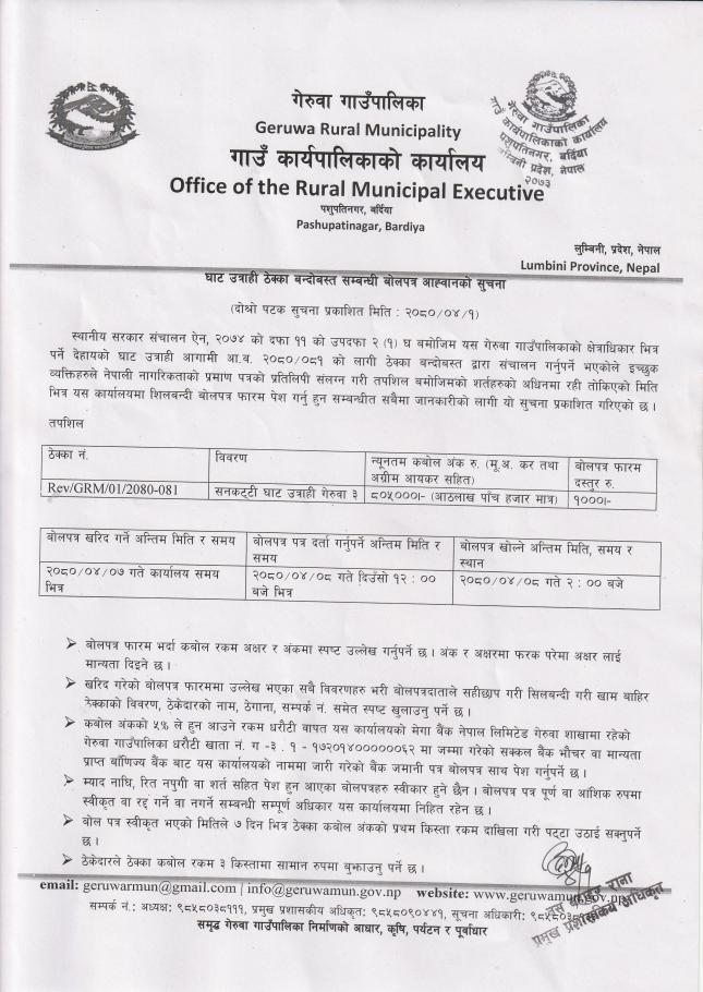 घाट उत्राही ठेक्का बन्दोबस्त सम्बन्धी दोश्रो पटक बोलपत्र आह्वानको सूचना