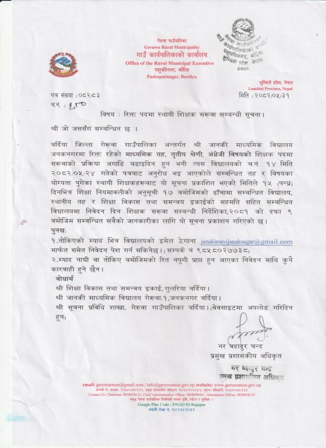 रिक्त पदमा स्थायी शिक्षक सरुवा सम्बन्धी सूचना