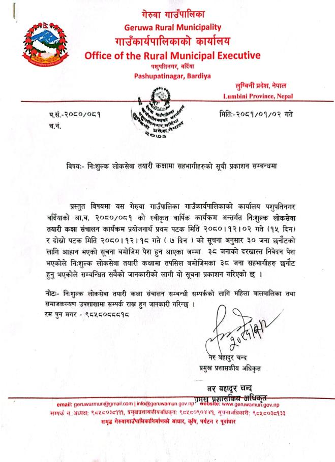 लोकसेवा तयारी कक्षामा सहभागी छनौट सुचना