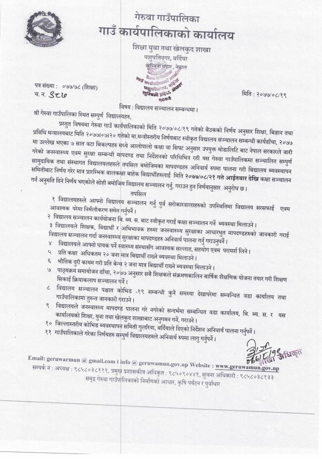 विधालय सञ्चालन सम्बन्धमा ।