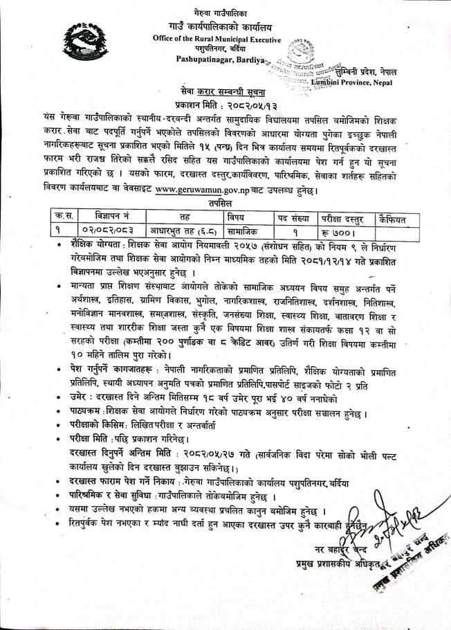 शिक्षक करार सेवा सम्बन्धी सूचना