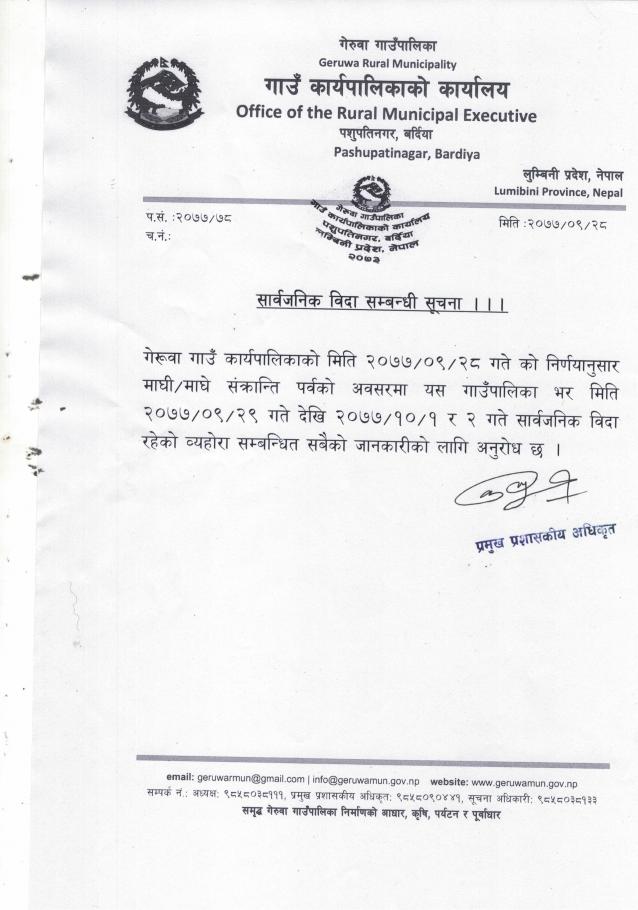 सार्वजनिक विदा सम्बन्धी सूचना ।।।