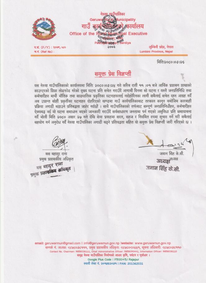 सुयक्त प्रेस विज्ञप्ती