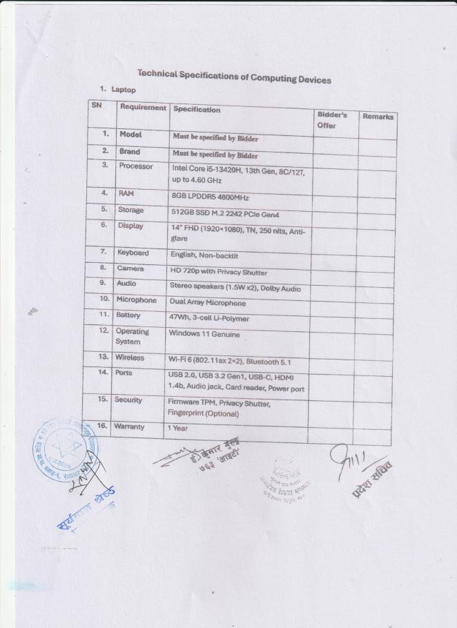 सूचना तथा संचार प्रविधिसँग सम्बन्धित सामाग्रीहरुको दररेट पेश गर्ने सम्बन्धी सूचना