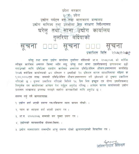 घरेलु तथा साना उधोग कार्यालय, गुलरिया बर्दियाको सूचना ।।।