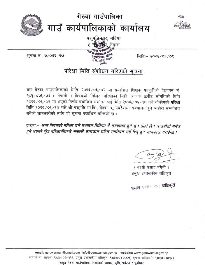 परिक्षा मिति संशोधन गरिएको सूचना ।।।
