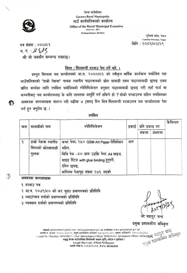 शिलबन्दी दरभाउ पेश गर्ने बारे