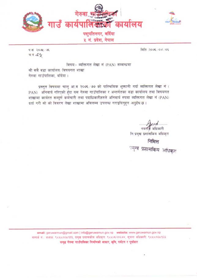 व्यक्तिगत लेखा नम्बर (PAN) सम्बन्धमा ।।।