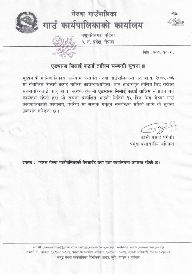 एडभान्स सिलाइकटाइ तालिम सम्बन्धी सूचना ।।।