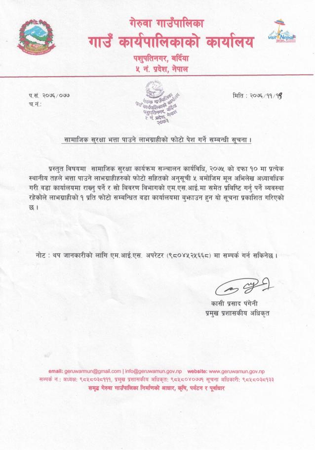 सामाजिक सुरक्षा भत्ता पाउने लाभग्राहीकाे फोटो पेश गर्ने सम्बन्धी सुचना ।
