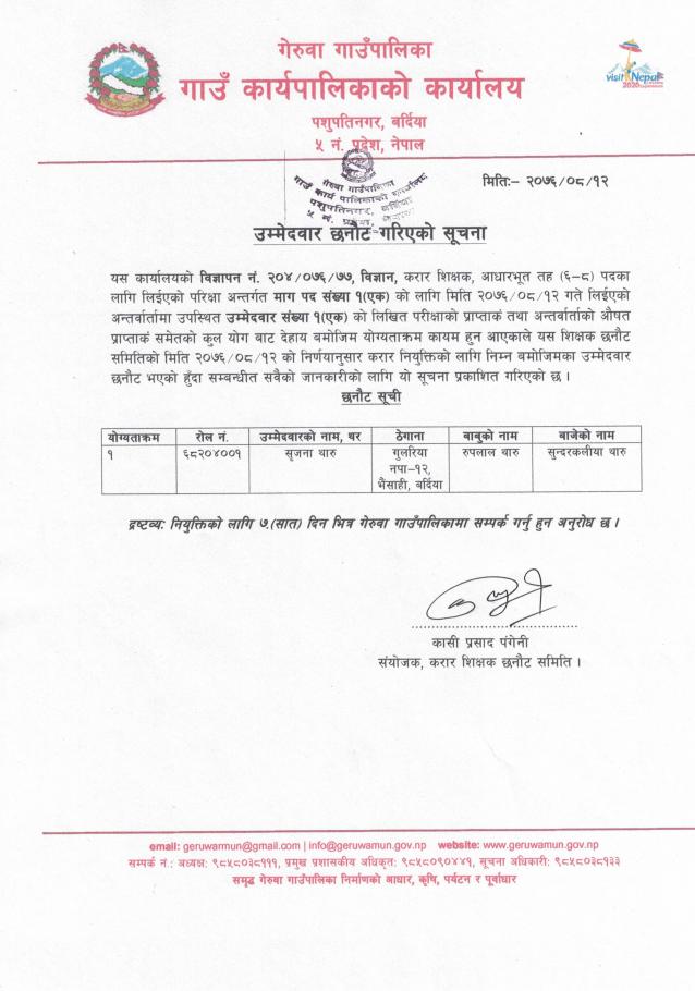 उम्मेदवार छनाैट गरिएको सूचना ।