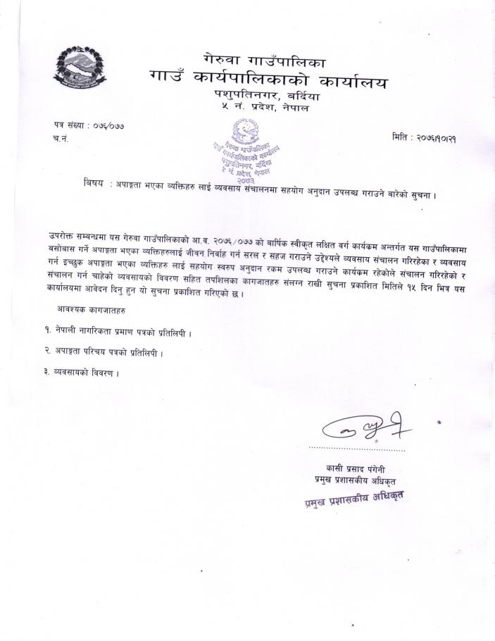 अपाङ्गता भएका व्यक्तिहरू लाइ व्यवसाय संचालन सहयोग अनुदान उपलब्ध गराउने बारेको सुचना ।